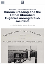 "Human Breeding and the Lethal Chamber: Eugenics among British Socialists", History Reclaimed, december 2025 [Læs her] (Engelsk)